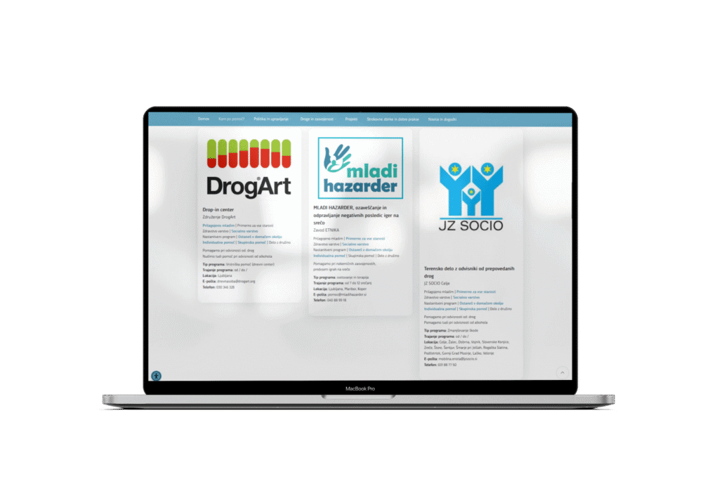 - zbrane informacije o organizacijah, svetovalnicah in storitvah, kjer lahko posamezniki poiščejo pomoč.